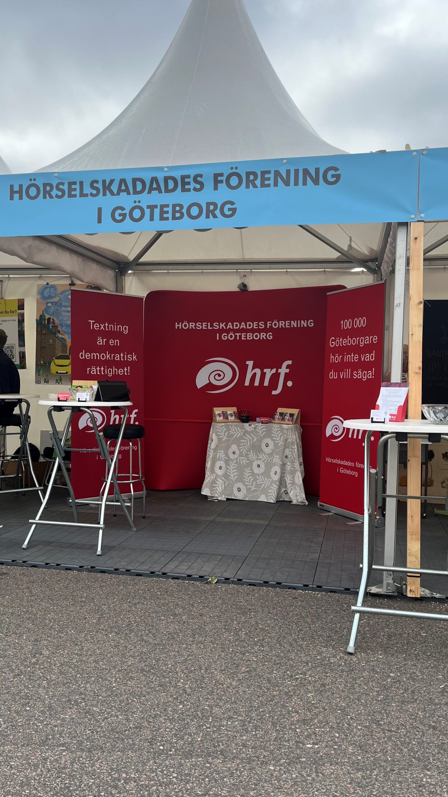 I slutet av augusti var Hörselskadades förening i Göteborg med på Frihamnsdagarna (Ett mini Almedalen i Göteborg). Vårt tema i år var ”Textning är en demokratisk rättighet”. I samarbete med Svensk Skrivtolkning AB och Frihamnsdagarna såg vi till så att programmen på 8 scener var textas med hjälp av en AI-lösning.