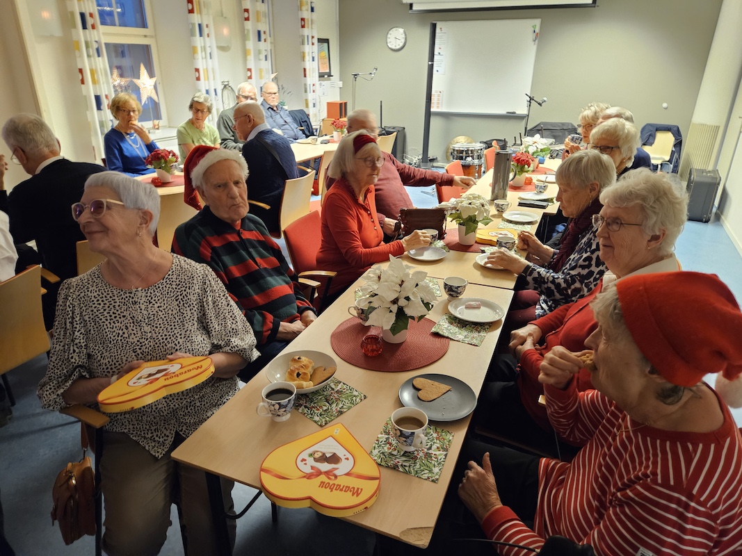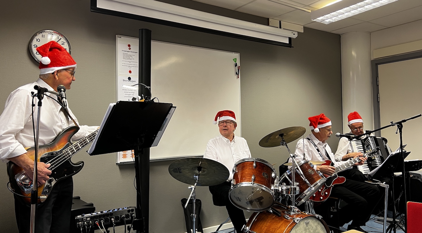 Denna regniga söndagseftermiddag samlades vi för att ha julfest på Husknuten i Halmstad. Vår egen tomtemor och tomtefar bjöd på glögg med tilltugg och sedan underhöll ”Gamla Favoriter” med igenkännande låtar och eftermiddagen avslutades med kaffe o dopp. Tre damer fick lite extra uppskattning för all hjälp under året med allt från att baka till att koka kaffe. Tack och en önskan om God Jul och Gott Nytt År till alla.