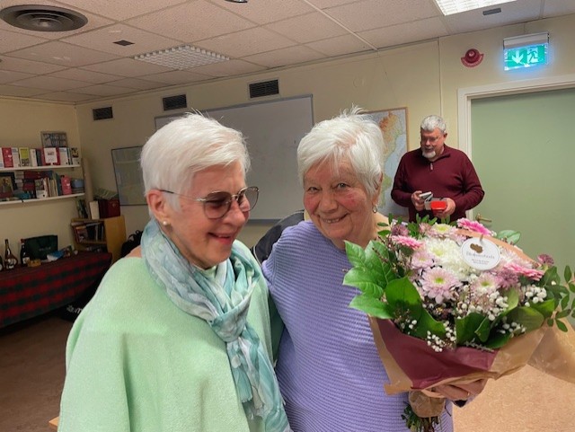 Föreningen tackade av Inga med stor blombukett och ett presentkort som gör att hon gratis kan vara med på och följa med på våra aktiviteter.