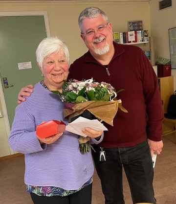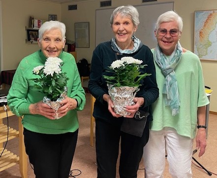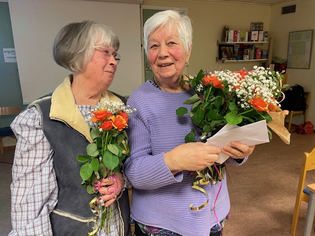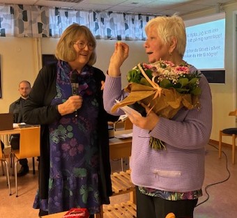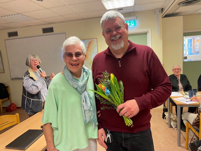 Föreningen tackade Inga med stor blombukett och ett presentkort som gör att hon gratis kan vara med på och följa med på våra aktiviteter.