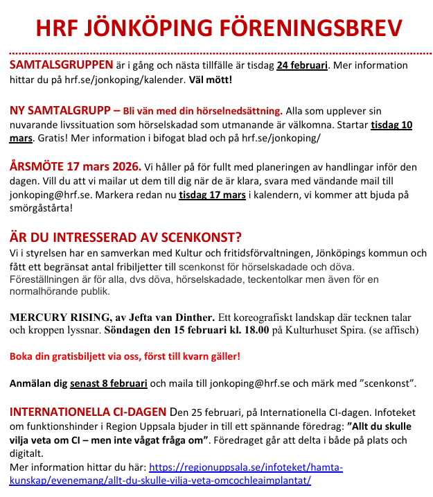 Vi, Hörselskadades Förening (HRF) Jönköping, bjuder in alla medlemmar + en vän (som inte behöver vara medlem) – till ett föreningsmöte kombinerat med glögg, matig fika, quiz, och hörselinformation. Tisdagen den 9 december kl. 17.30