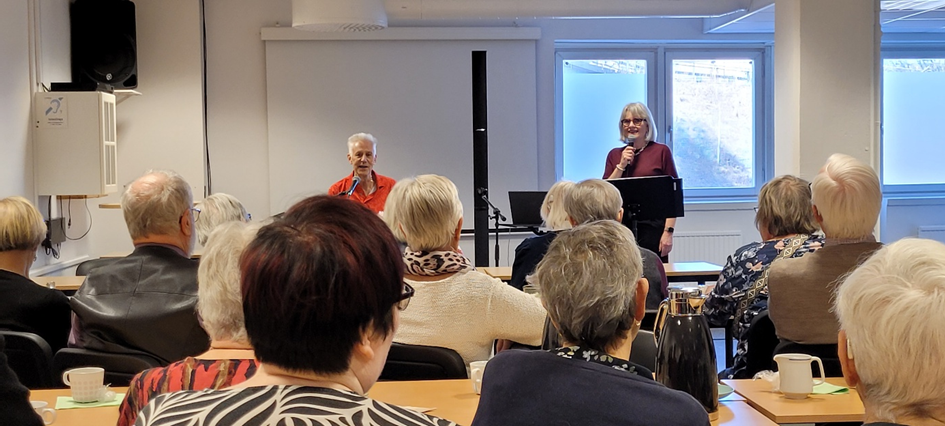 Ordförande Roland Elfving inledde mötet genom att hälsa de 33 närvarande medlemmarna välkomna. Särskilt välkomnande riktades till dagens underhållare, Ola och Anki, som framförde välkända låtar från 1960- och 1970-talet och bidrog till en trivsam atmosfär.