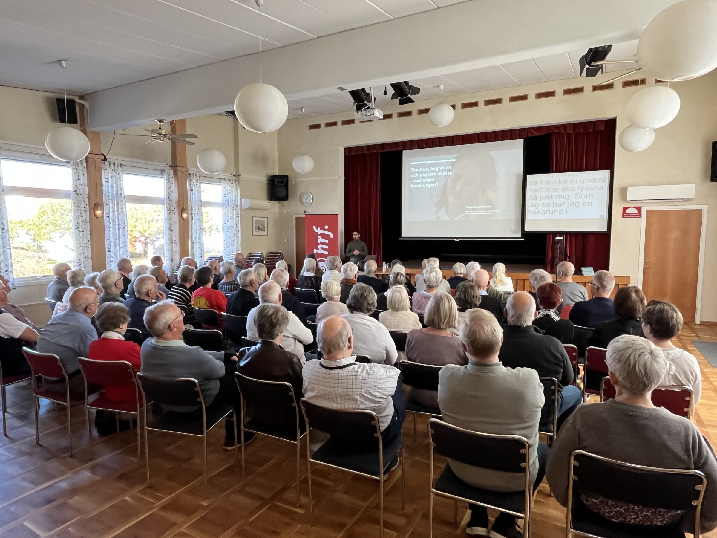 Den 18 oktober 2025 stod vi värd för en föreläsning anordnad av HRF Kronoberg och ABF. Föreläsningen handlade om Tinnitus och föreläsare var Sebastian Waechter audionom och doktor i klinisk medicin som också forskat på Tinnitus. Sebastian bjöd oss på mycket intressant information om hur viktigt de är att ta hand om all slags hörselproblematik och vilka konsekvenser det är för både samhället och individen att inte göra det.
