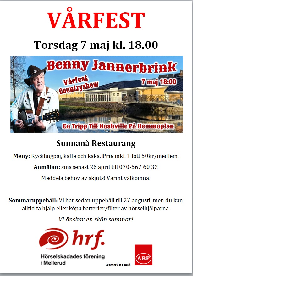 Torsdag 7 maj kl. 18.00 på Sunnanå Restaurang