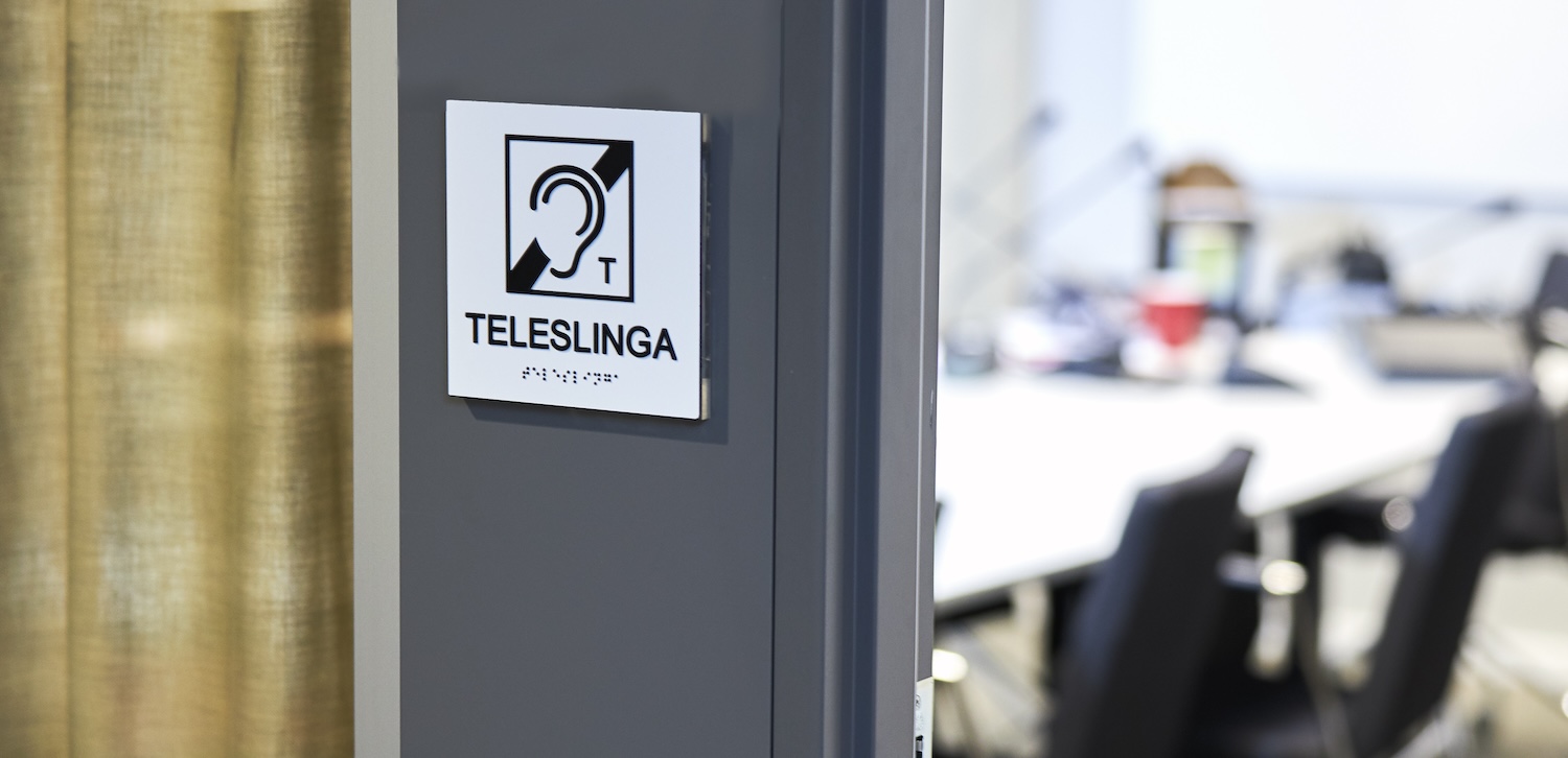 Teleslinga eller motsvarande. I publika lokaler finns ofta finns ofta teleslinga som underlättar att höra för hörapparatanvändare.