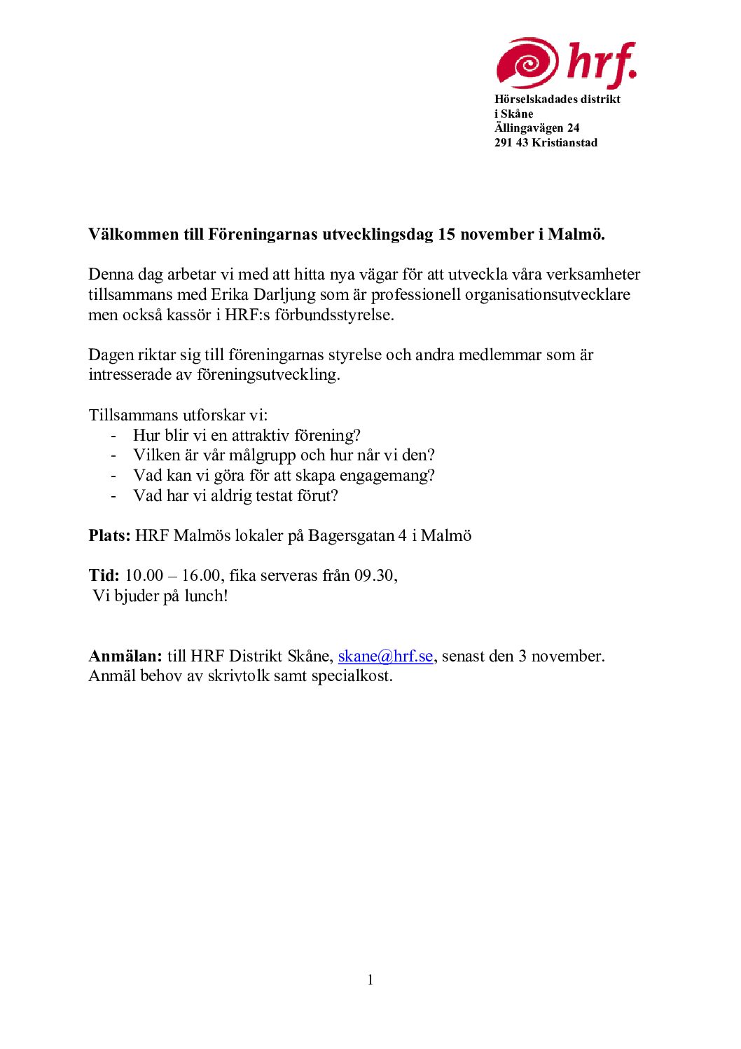 Inbjudan till TSS-helg 8–9 november 2025 HRF distrikt i Skåne i samverkan med Sundsgårdens folkhögskola, Råå Det är åter dags för vår populära TSS-helg på Sundsgården. Kursen vänder sig till dig som varit med tidigare...