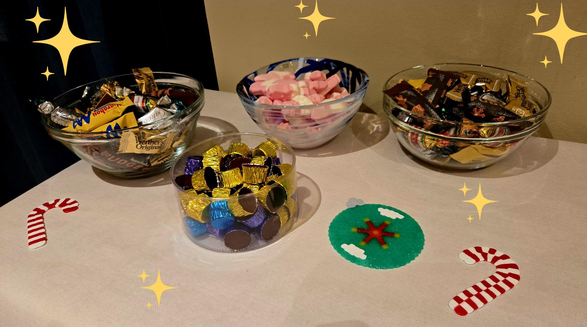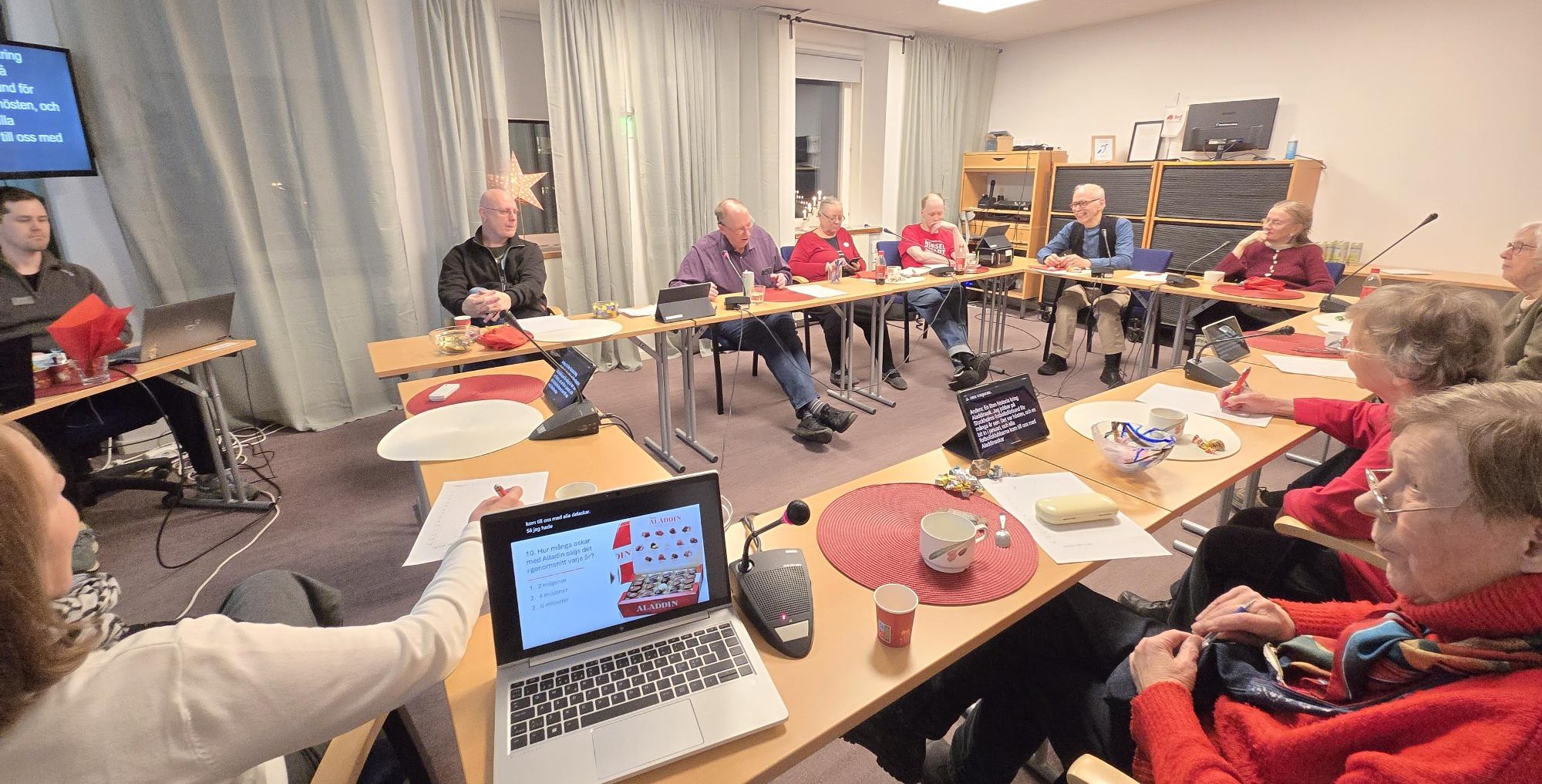 Efter maten bjöds det på fika med godis och medlemmarna fick gnugga geniknölar med julquiz.