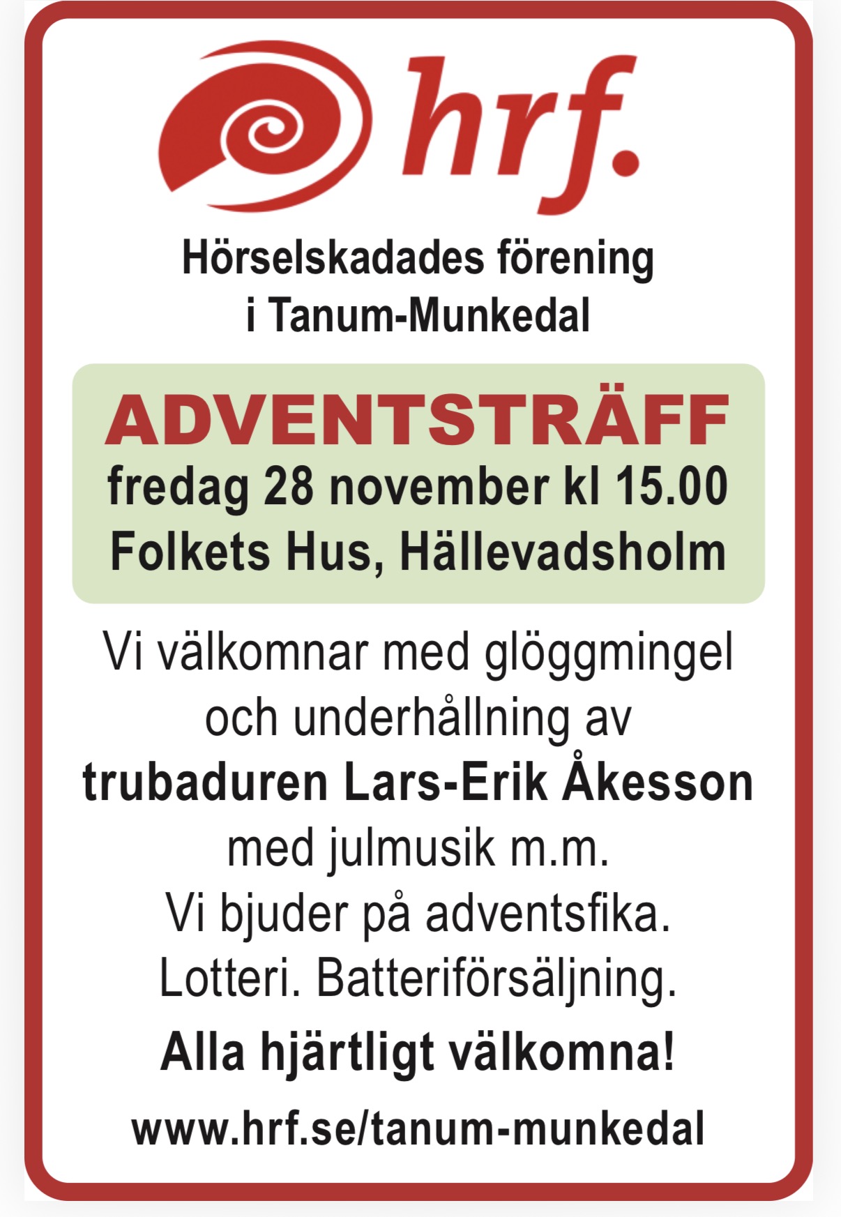 PÅ Adventsträff den 28 nov kl:15.00 i Hällevadsholm Folkets Hus