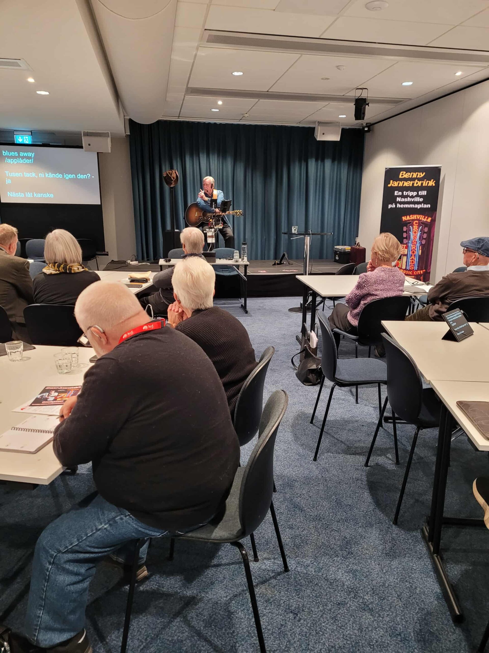 Vi lyssnade på professor i audiologi André Sadeghi på en föreläsning, som vi kommer att lägga ut på hemsidan. Efter en mycket god lunch fick vi musikunderhållning av Benny Jannebring , som spelade egna och andras countrylåtar. Mycket uppskattat! Efter sedvanlig fika så skildes vi åt.