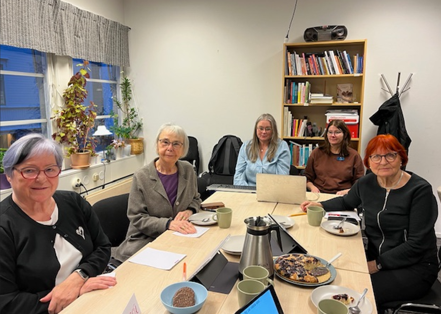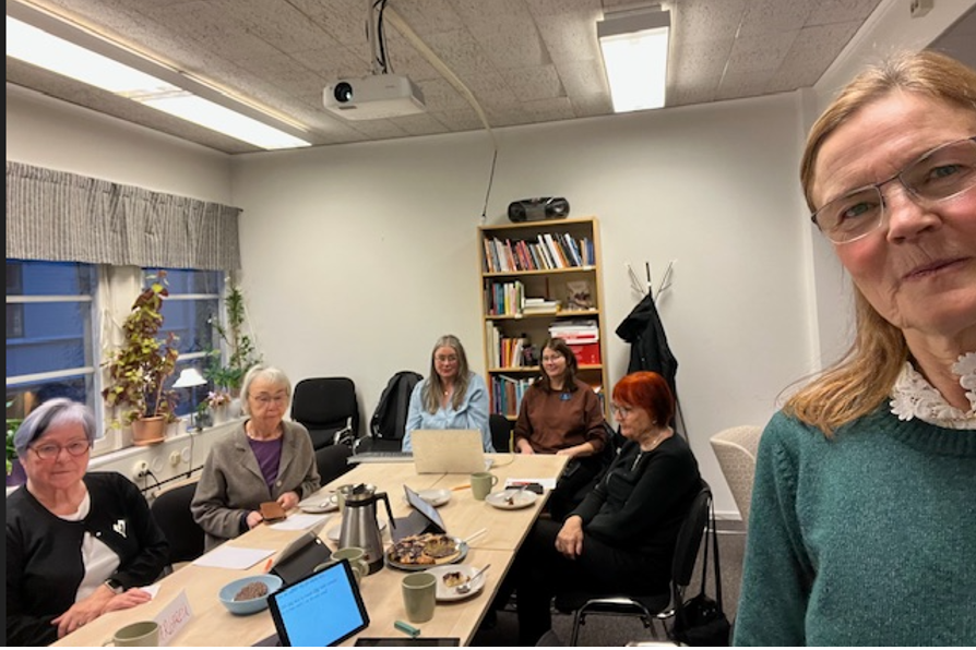 På bilden ser vi från vänster Margaretha, Lillemor samt Siv. Vilka var på plats sista gången3 saknades. På kortsidan har vi våra kära Skrivtolkar som är så värdefulla för oss. Tyvärr har jag inte deras namn.