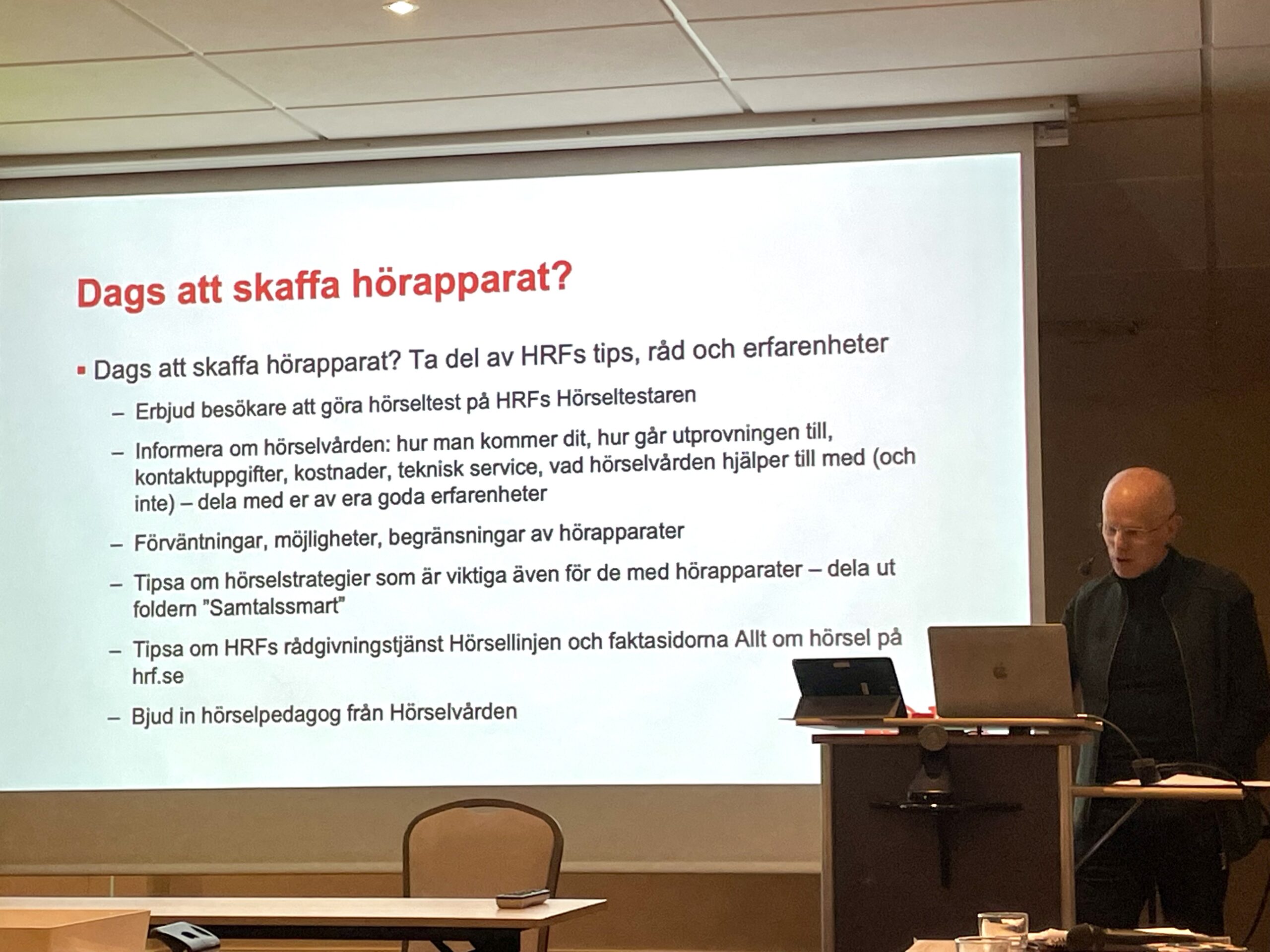 HRF Västerbottens ordförande, David Grahn, hälsade deltagarna välkomna till två givande konferensdagar. I Sverige finns ca 1,7 miljoner personer med en hörselskada vilket innebär att Hörselskadades Riksförbund har en viktig uppgift i att lyfta fram dessa frågor i samhället. Allt för många får inte det ”hörselsmarta” samhälle de förtjänar.