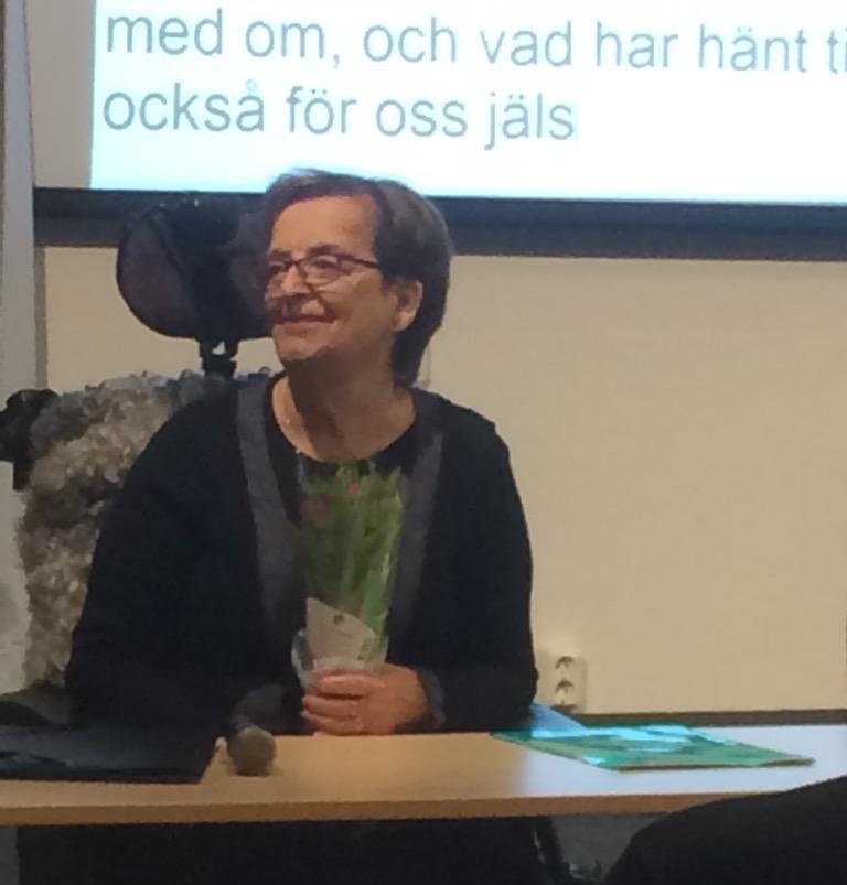 Förutom Gunilla fick vi också lyssna till kommunens brukarombud, Kristina Bromark, som tillträdde den nya tjänsten i mars. Hon berättade om sin roll, där hon ska vara en slags brygga mellan oss brukare och kommunens organisationsnivå. En viktig uppgift är också att öka medvetenheten i förvaltningar och bolag. Hon ska även följa upp att kommunen arbetar i enlighet med programmet för full delaktighet för personer med funktionsnedsättning, som togs fram tillsammans med funktionshinderrörelsen i slutet av 2016. Kristina inledde vår eftermiddag, men stannade sedan kvar och lyssnade på Gunillas presentation, och jag gissar att hon fick med sig en hel del insikter om de problem som hörselskadade kan råka ut för. Hon förväntar sig också en hel del samtal från oss brukare, så den som har något som behöver framföras kan kontakta henne via telefon eller e-post.