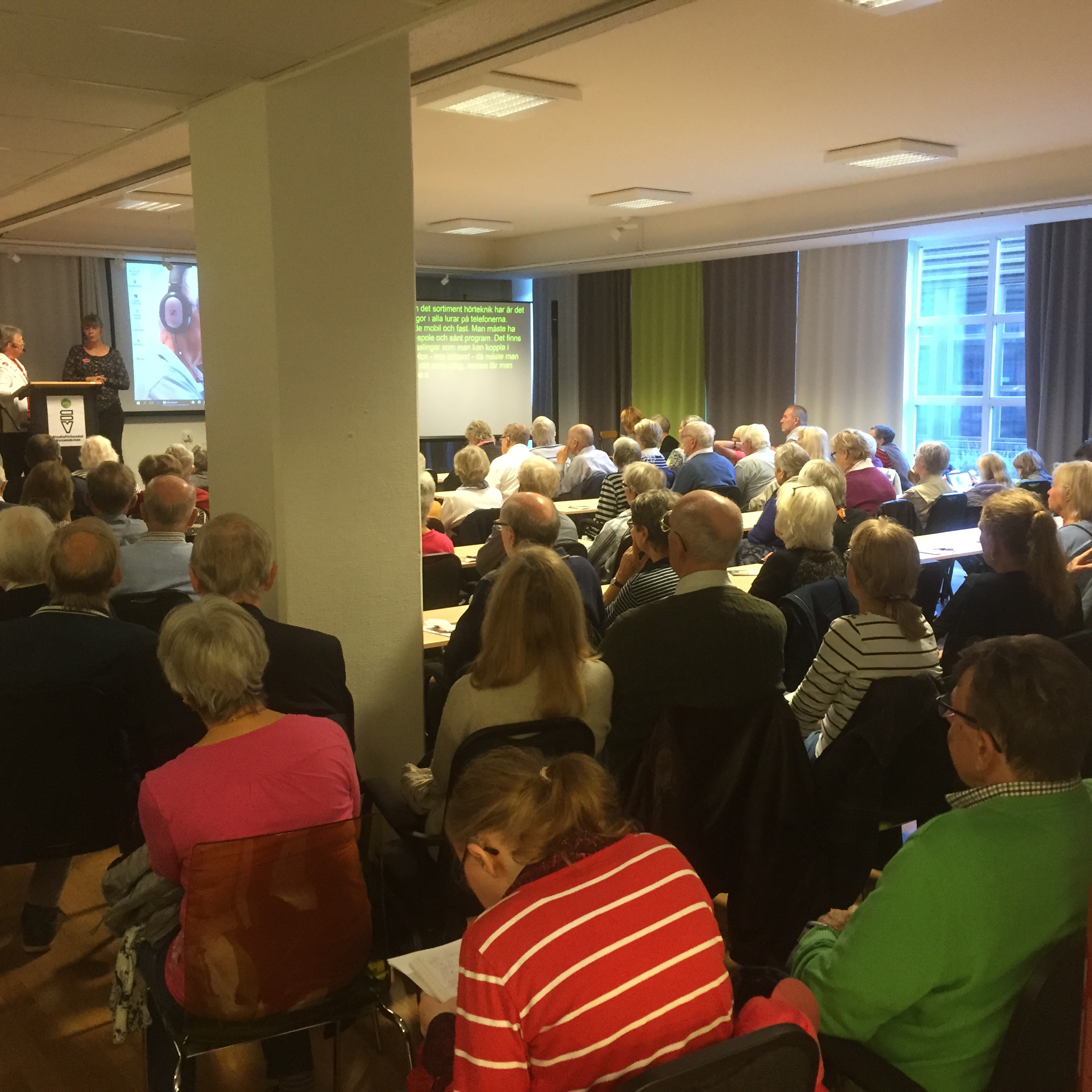 HRF Uppsala hade Hörseldag med föreläsningar, utställning och hörseltest på Vuxenskolan i Uppsala lördagen 14 oktober. Omkring 100 personer hade tagit sig till lokalen för att lyssna på föreläsningar om Tinnitus. Några genomförde hörseltester och man fick information om vilka hörseltekniska produkter som finns.