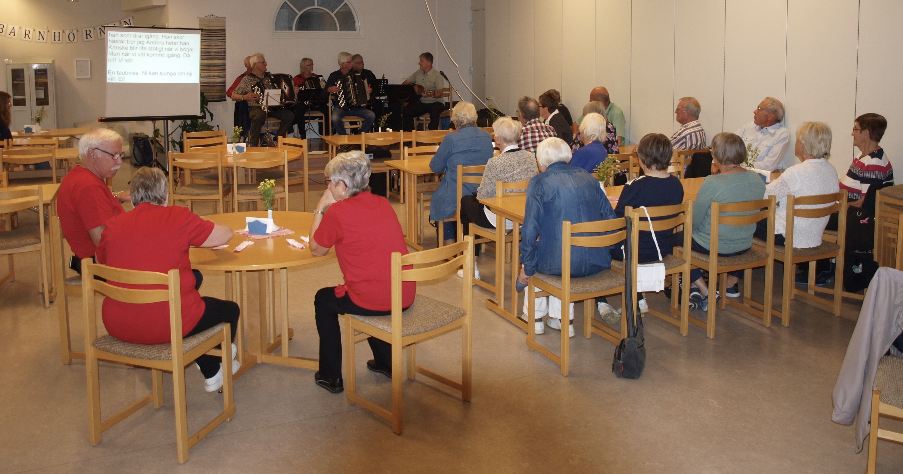 Hörselskadades förening HRF Vännäs inbjöd den 31/8 till Cafékväll i missionskyrkans samlingslokal. Ett 30tal medlemmar hade hörsammat inbjudan